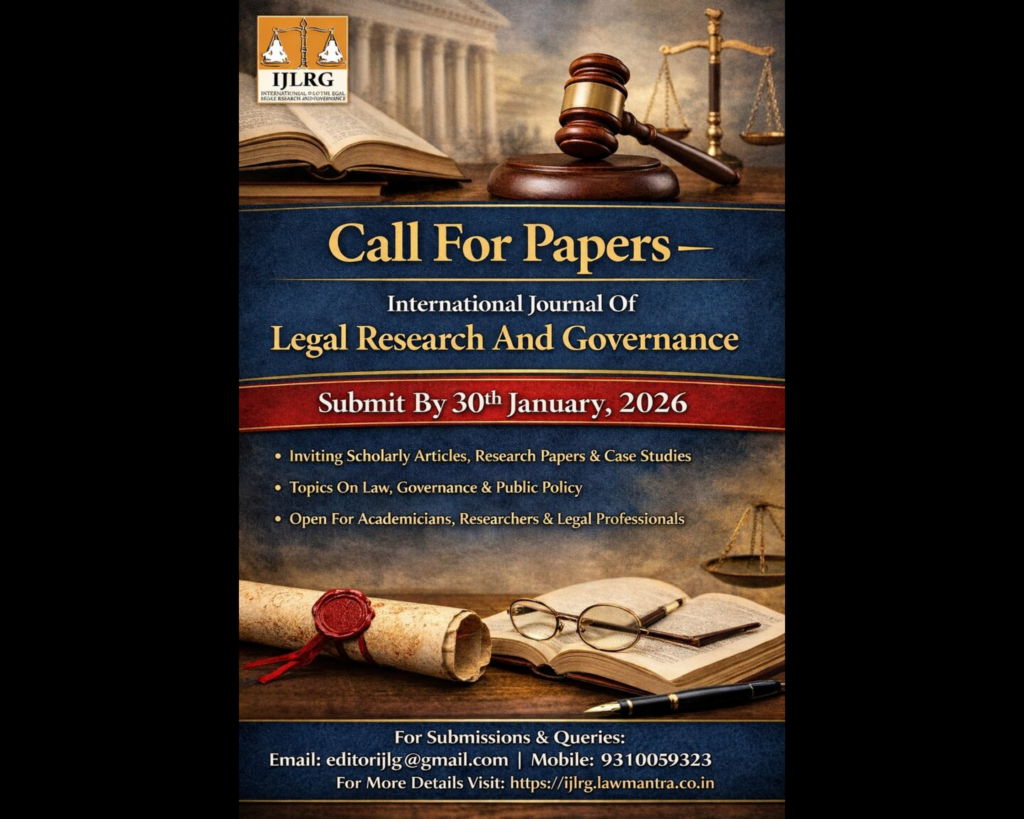 Call For Papers – International Journal of Legal Research and Governance (ISSN: 2394- 7829)| Submit By 30th January, 2026